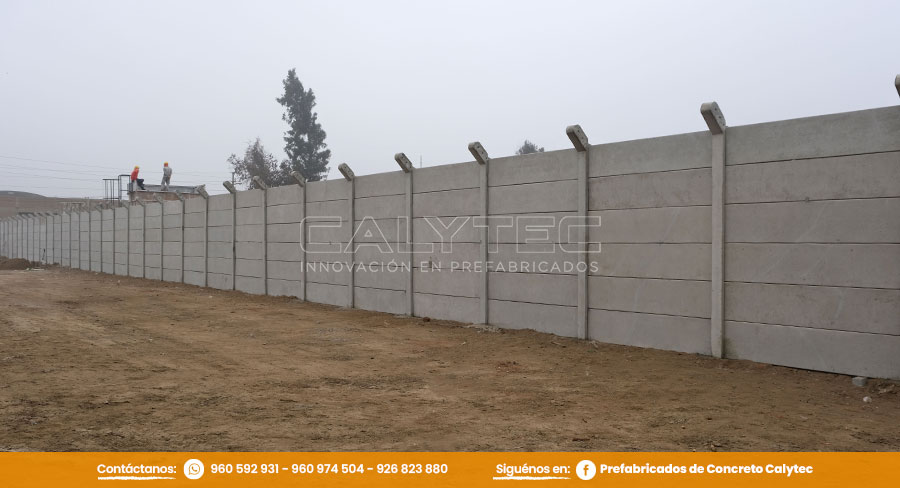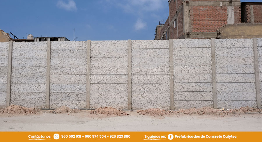 Cerco Tipo Placa Prefabricado de concreto, es el único muro que le brinda una mejor resistencia y durabilidad frente a los muros tradicionales. Son de fácil y rápida instalación, protegiendo sus propiedades en todo el perímetro cercado. Se instalan postes que tienen forma de H para encajar con las placas que componen la pared de concreto. La ventaja de usar un cerco tipo placa, es que le brindan una economía sustancial de hasta 70% frente a otros muros, además de poder elegir diversos diseños de acabado. Conoce más sobre las ventajas de usar prefabricados aquí.